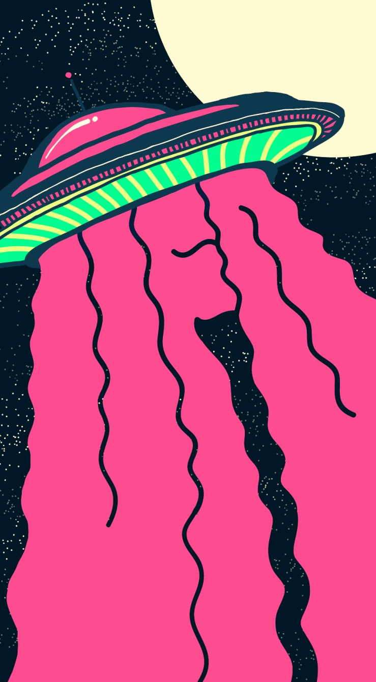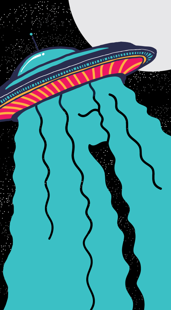 UFO’s are cool. There really is no denying that. They have outreach programs to redneck communities im America’s mid-west, they keep our bovine population from overcrowding and are kind enough to come and mow our field’s now and then (and get creative in the process!). So today’s illustration is a tip of the old tin-foil hat to our Alien brethren up there in the sky plotting our destruction and/or acceptance into the Intergalactic Council of Populated Planets. Enjoy!