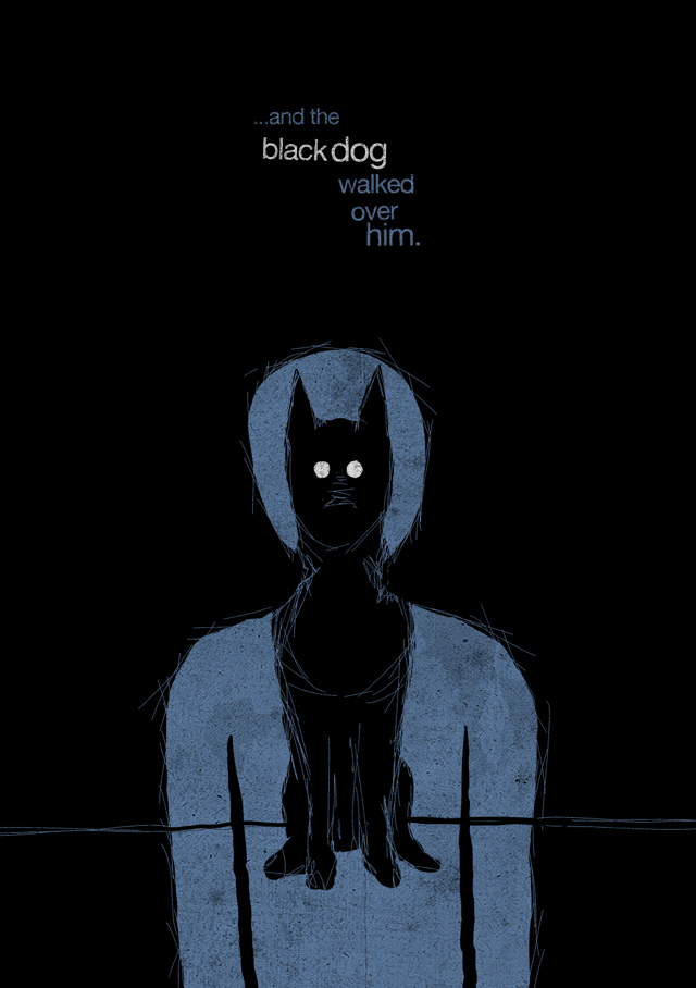 I was reading about Sir Winston Churchill and how he suffered from depression throughout his life. He referred to the depressed feeling as his ‘black dog’ and that term is now quite widely used to describe the condition. Funnily enough as I was drawing this image, the song Dog by Andy Bull came on iTunes, the lyrics of which speak about the black dog of depression too! Crazy stuff!