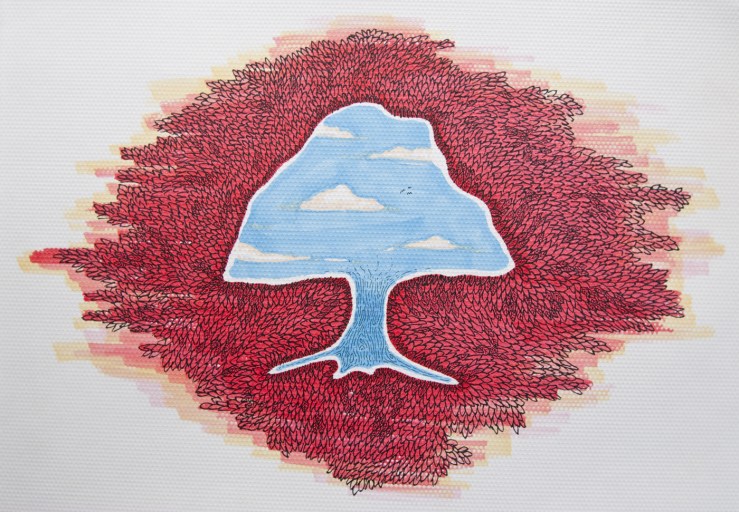 Another real life illustration in that I have zero help from a computer or the undo button and another tree which I seem to be favouring lately too. Some close ups of the detail after the jump.
